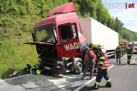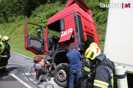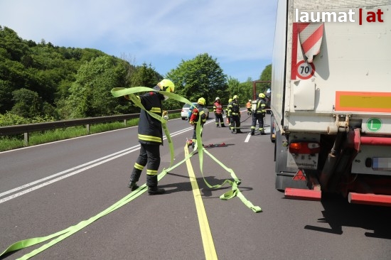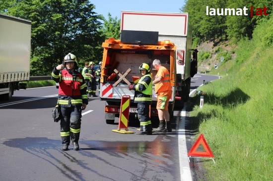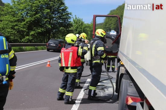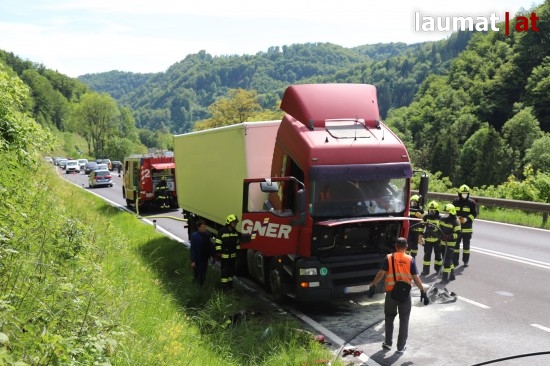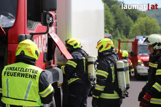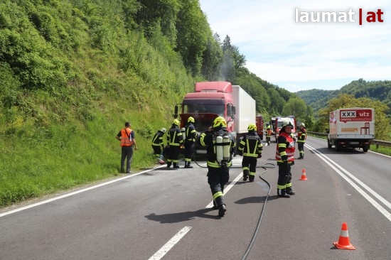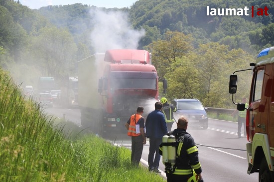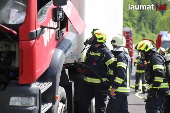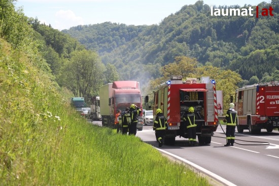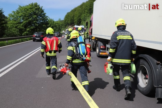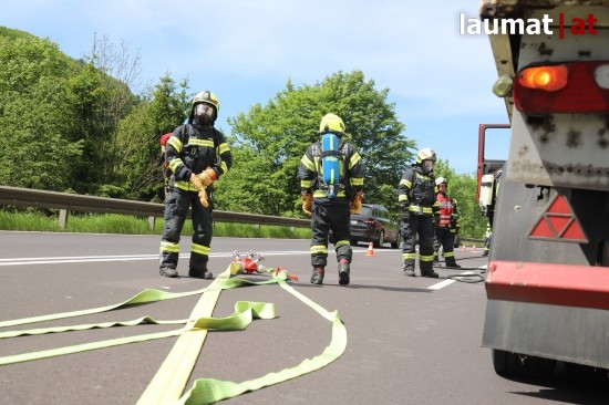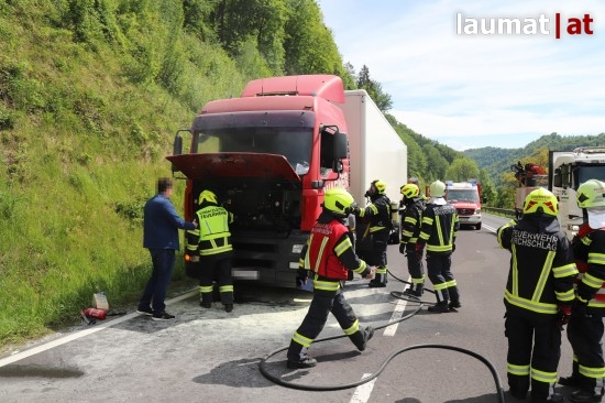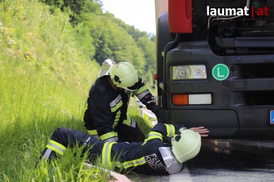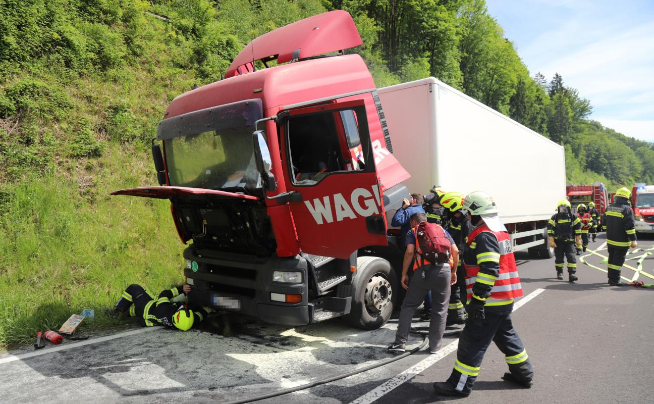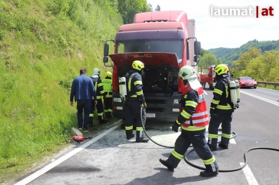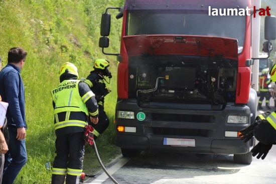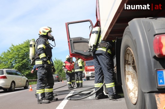 Drei Feuerwehren standen Mittwochnachmittag bei einem Brand im Motorraum eines LKW auf der Leonfeldener Straße bei Kirchschlag bei Linz (Bezirk Urfahr-Umgebung) im Einsatz.