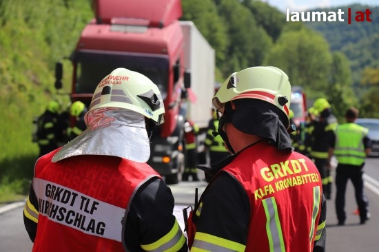 Entstehungsbrand im Motorraum eines LKW auf der Leonfeldener Straße in Kirchschlag bei Linz
