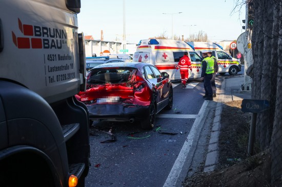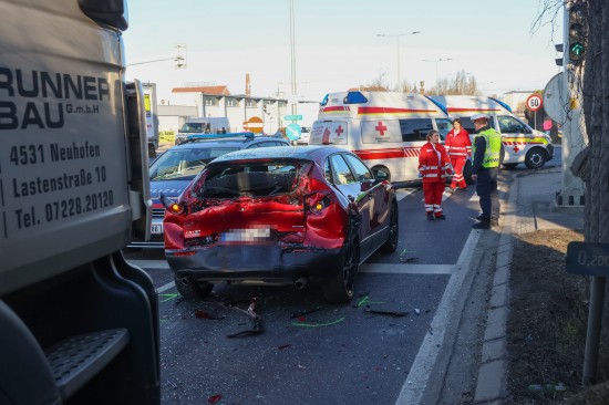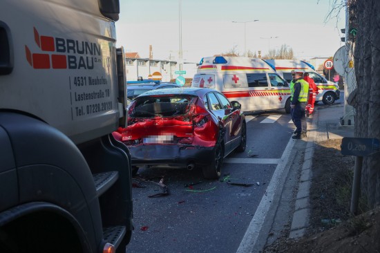 Wels. Ein heftiger Auffahrunfall vor einer Ampel hat Montagvormittag in Wels-Pernau für erhebliche Verkehrsbehinderungen gesorgt. Rettung und Polizei standen im Einsatz.