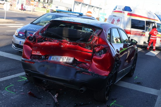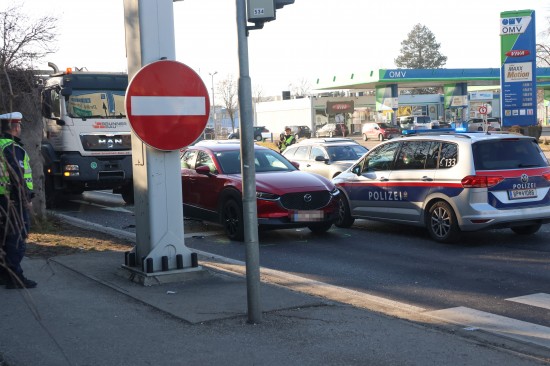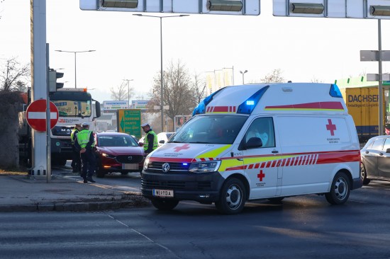 Ein heftiger Auffahrunfall vor einer Ampel hat Montagvormittag in Wels-Pernau für erhebliche Verkehrsbehinderungen gesorgt. Rettung und Polizei standen im Einsatz.