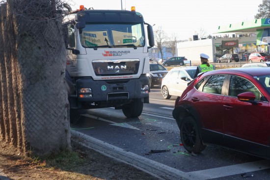 Erhebliche Verkehrsbehinderungen: LKW auf Innviertler Straße in Wels-Pernau auf PKW aufgefahren