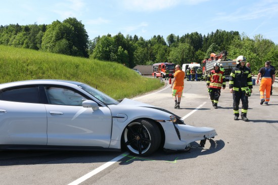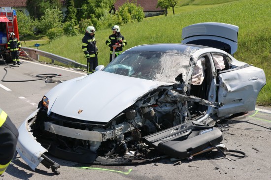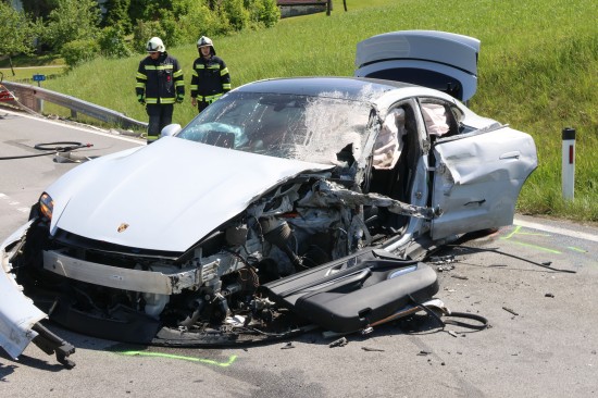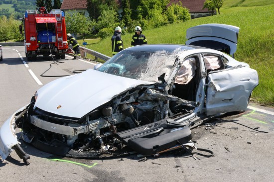 Exklusiver Sportwagen auf Scharnsteiner Straße bei Gschwandt in entgegenkommenden LKW gekracht