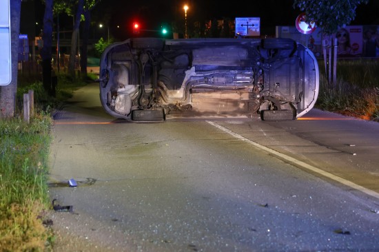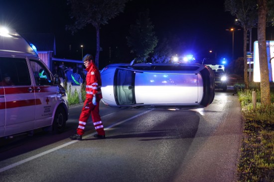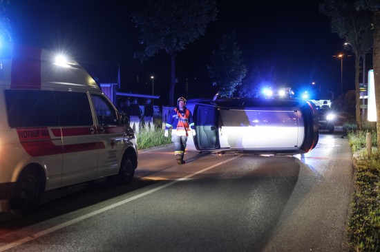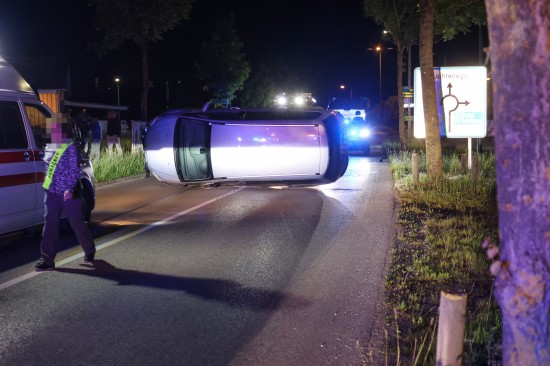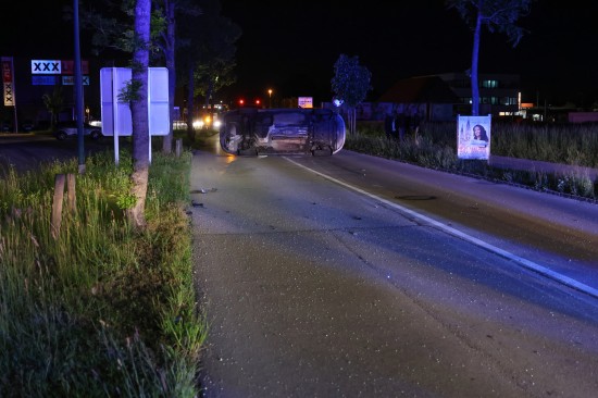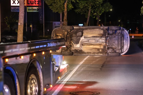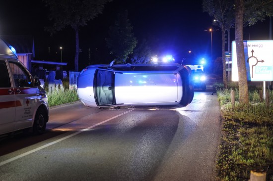 Fahrmanöver misslungen: Auto nach Ausfahrt aus Kreisverkehr in Wels-Lichtenegg umgestürzt