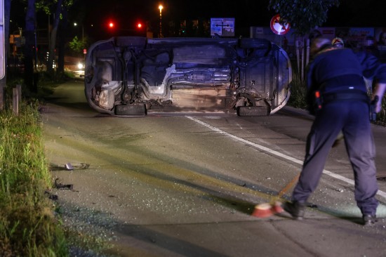 Die Einsatzkräfte der Feuerwehr wurden gegen 01:00 Uhr in der Nacht auf Montag in die Sengerstraße in den Welser Stadtteil Lichtenegg alarmiert, weil dort offenbar Splitter und Fahrzeugteile auf der Fahrbahn liegen sollten. Allem voran lag dann beim Eintreffen vor allem ein PKW quer über die Fahrbahn. Zuvor war ein Lenker offenbar auf der Noitzmühlstraße unterwegs. Im Kreisverkehr an der Kreuzung der Noitzmühlstraße mit dem Trausenegger Damm und dem Westring ist ein Fahrmanöver dann offensichtlich misslungen, der PKW fuhr danach über eine Verkehrsinsel, stürzte um und schlitterte die Noitzmühlstraße entlang. Verletzt wurde niemand. Das Unfallfahrzeug wurde vom Abschleppdienst wieder auf die Räder gestellt und abtransportiert. Die Feuerwehr unterstützte bei der Bergung, band ausgelaufene Betriebsmittel und reinigte die Fahrbahn. Eine Kehrmaschine wurde verständigt.