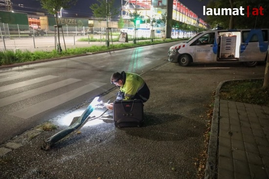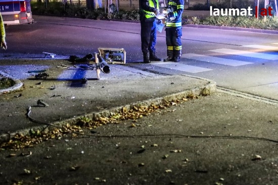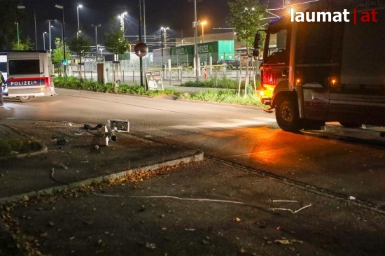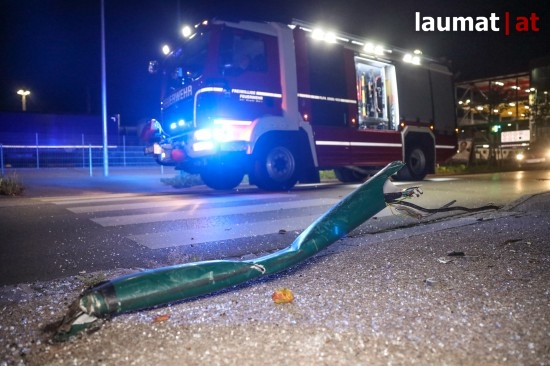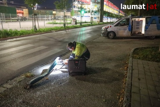 Fahrzeug crasht in Wels-Neustadt gegen Beleuchtung eines Schutzweges