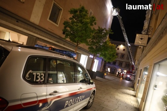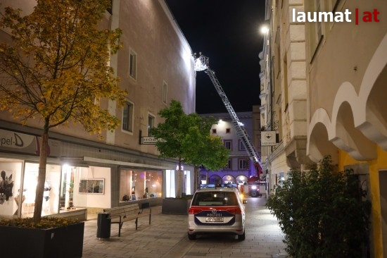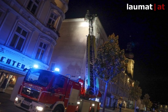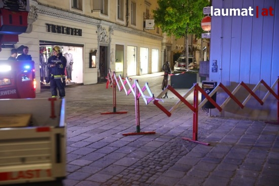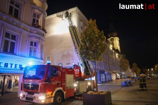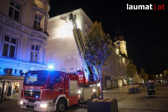 Die Feuerwehr wurde am späten Mittwochabend zu Sicherungsmaßnahmen loser Fassadenteile auf den Welser Stadtplatz alarmiert.