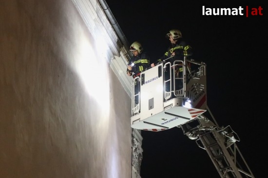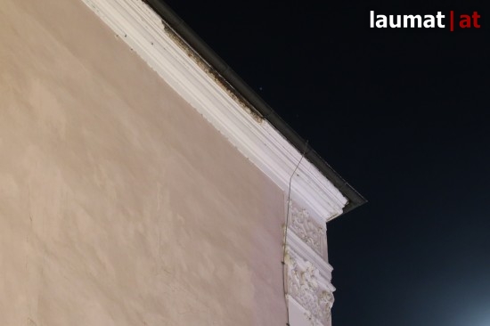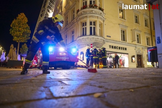 Wels. Die Feuerwehr wurde am späten Mittwochabend zu Sicherungsmaßnahmen loser Fassadenteile auf den Welser Stadtplatz alarmiert.