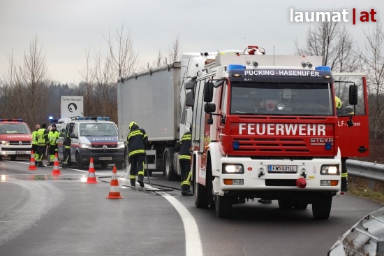 Weißkirchen an der Traun. Eine festsitzende Bremse bei einem LKW-Auflieger hat Dienstagvormittag einen größeren Einsatz der Feuerwehren auf der Welser Autobahn bei Weißkirchen an der Traun (Bezirk Wels-Land) nach sich gezogen.