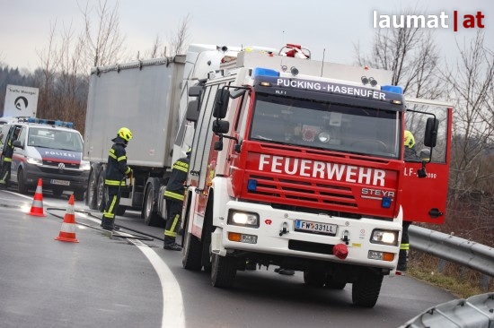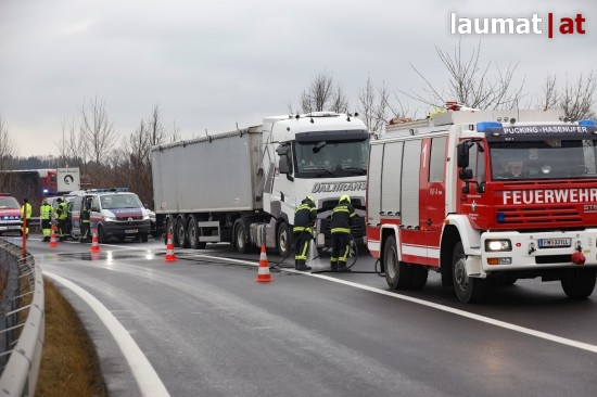 Feuerwehr bei Brandverdacht an einem LKW auf Welser Autobahn in Weißkirchen an der Traun im Einsatz