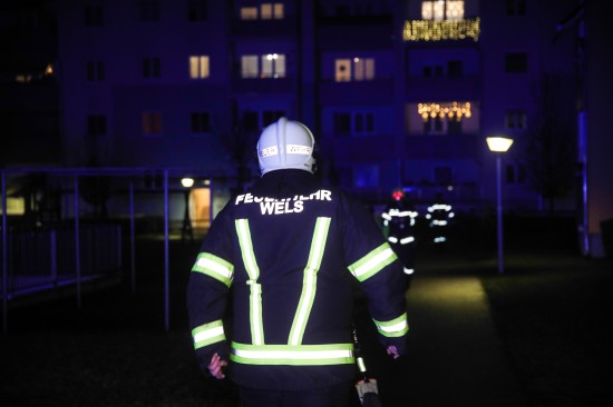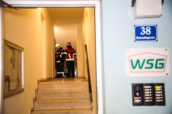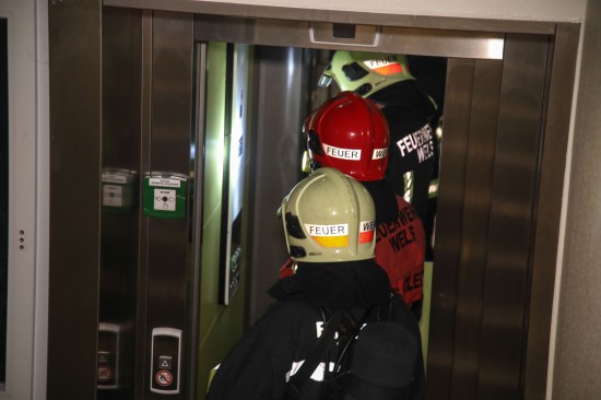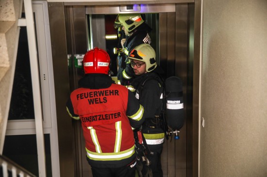 Feuerwehr bei Brandverdacht in einem Aufzug eines Mehrparteienwohnhauses in Wels-Neustadt im Einsatz
