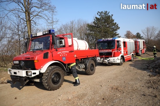 Feuerwehr bei Flurbrand in Wels-Vogelweide im Einsatz