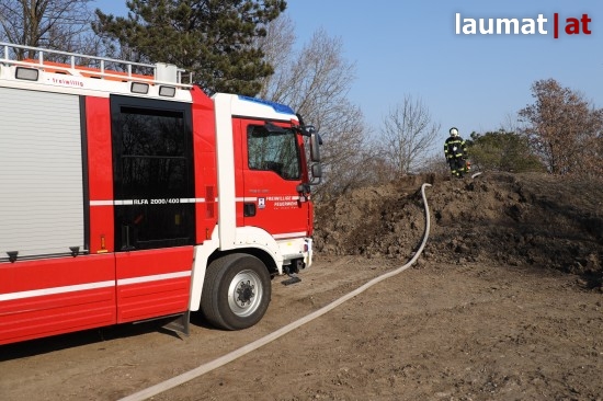 Die Einsatzkräfte wurden zu einem Brand in einem eher schwierig zugängigem Bereich der Freizeitanlage Wimpassing gerufen. Es brannte dort eine Fläche von etwa 30 Quadratmetern. Der Brand konnte von den Einsatzkräften rasch eingedämmt und schließlich endgültig abgelöscht werden.