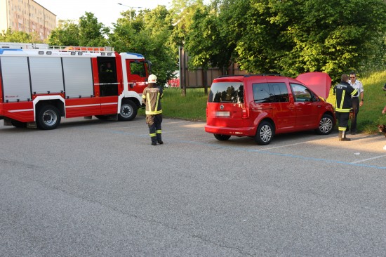 Ein PKW stand beim Eintreffen der Feuerwehr mit geöffneter Motorhaube auf einem Parkplatz, die Einsatzkräfte kontrollierten den betroffenen Bereich, konnten zum Glück aber keinen unmittelbaren Brand am Fahrzeug entdecken und somit rasch wieder Entwarnung geben und abrücken.