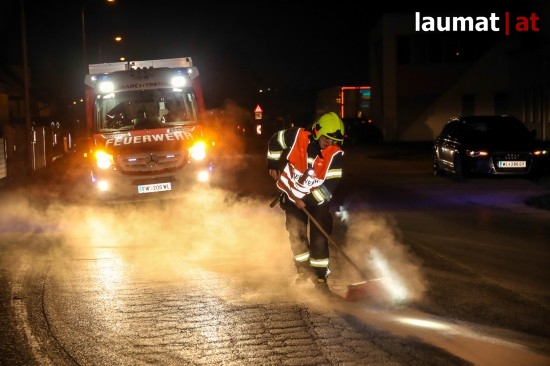 Marchtrenk. Die Feuerwehr stand Donnerstagabend in Marchtrenk (Bezirk Wels-Land) erneut bei einer längeren Ölspur im Einsatz.