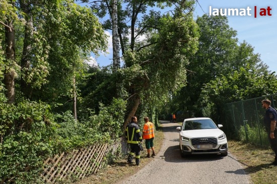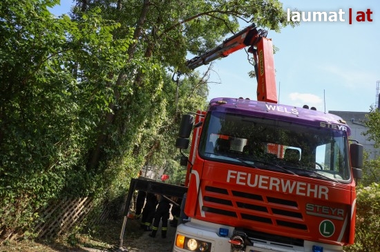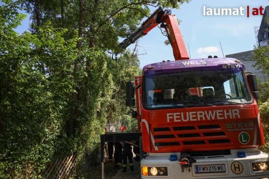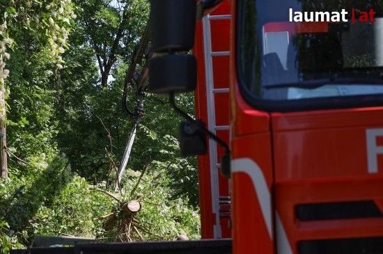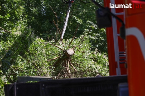 Wels. Ein umgestürzter Baum hat Freitagmittag für einen längeren Einsatz der Feuerwehr in Wels-Schafwiesen gesorgt.