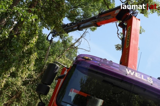 Ein umgestürzter Baum hat Freitagmittag für einen längeren Einsatz der Feuerwehr in Wels-Schafwiesen gesorgt.