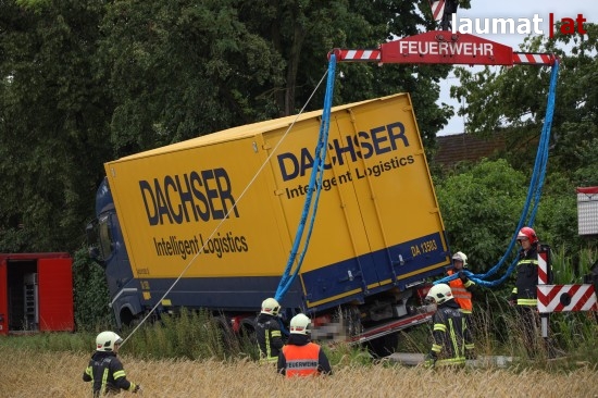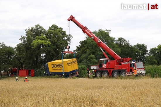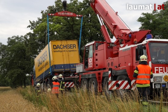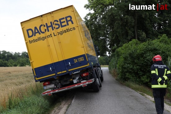 Durch eine Straßensperre im Kreuzungsbereich der B1 Wiener Straße mit der Mitterhoferstraße konnte ein LKW-Lenker mit seinem Schwerfahrzeug sein Ziel nicht erreichen und suchte eine Umleitungsstrecke. Er gelangte daraufhin auf die schmale Mühlstraße und in weiterer Folge zu weit auf das Bankett, welches nachgab. Der LKW kam in Schräglage zum Stillstand. Die Feuerwehr rückte daraufhin mit dem Kranfahrzeug an und konnte den LKW wieder zurück auf die Fahrbahn heben. Der LKW konnte die Fahrt daraufhin fortsetzen.