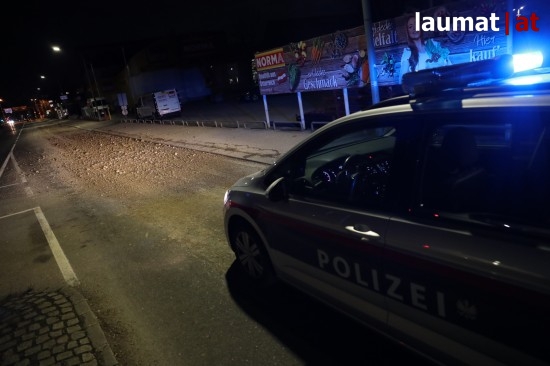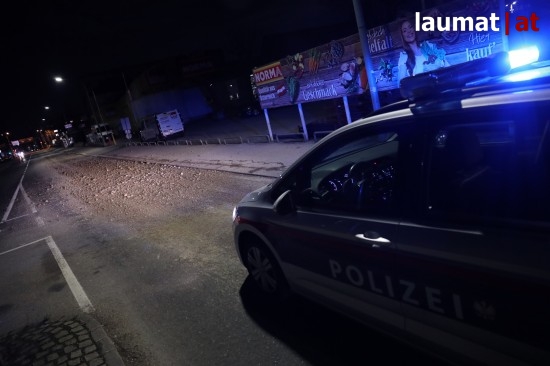 In Wels-Innenstadt kamen Samstagabend kurzzeitig die Feuerwehr sowie eine Kehrmaschine zum Einsatz, um verlorenen Schotter zu beseitigen.