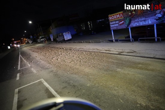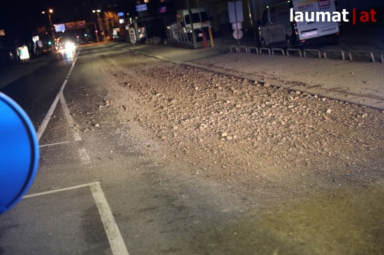 Wels. In Wels-Innenstadt kamen Samstagabend kurzzeitig die Feuerwehr sowie eine Kehrmaschine zum Einsatz, um verlorenen Schotter zu beseitigen.