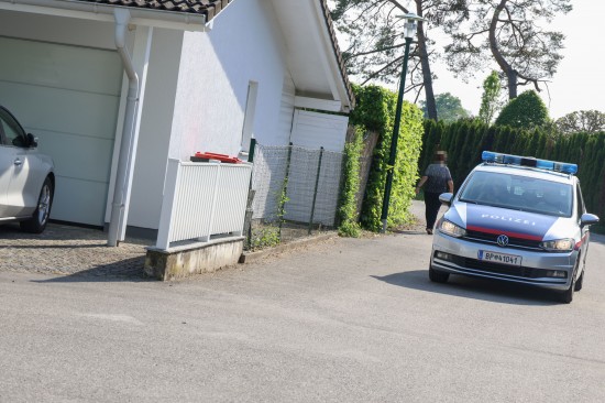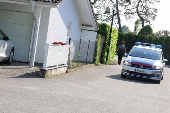 Feuerwehr und Polizei bei Heckenbrand in Wels-Lichtenegg im Einsatz