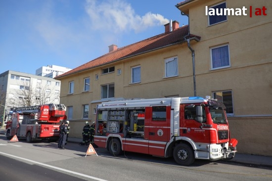 Feuerwehr und Rauchfangkehrer bei ausgedehntem Kaminbrand in Wels-Neustadt im Einsatz