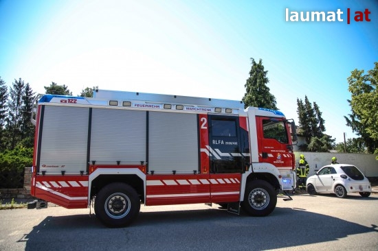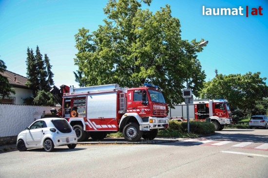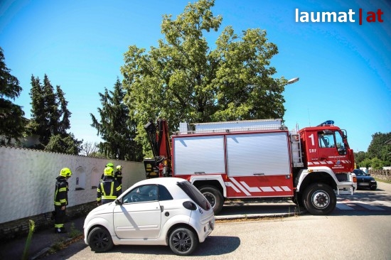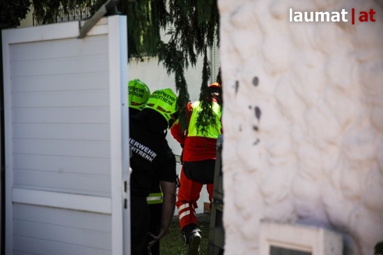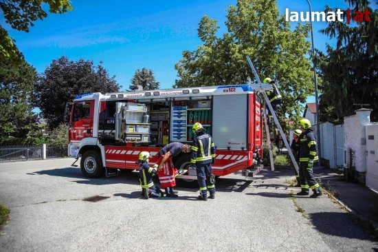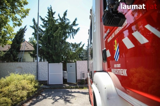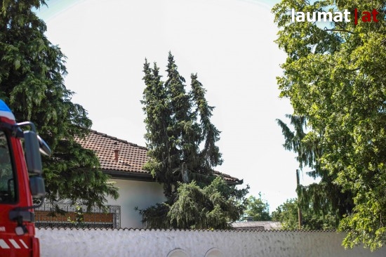 Feuerwehreinsatz in Marchtrenk: Baum mit mehreren Wipfeln lehnte sich an Hausfassade