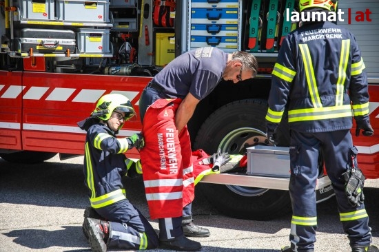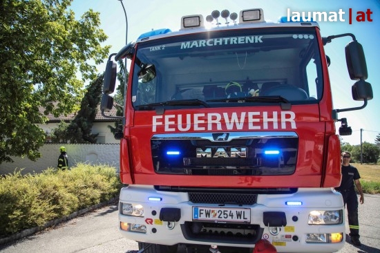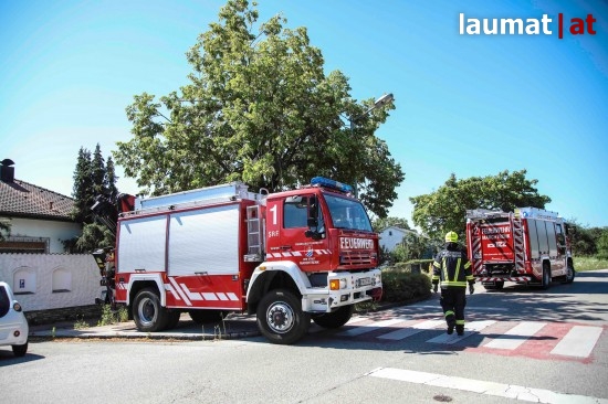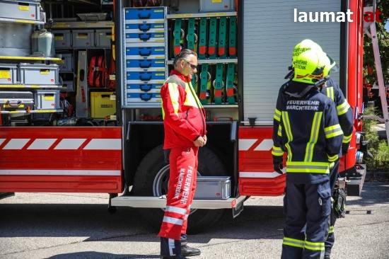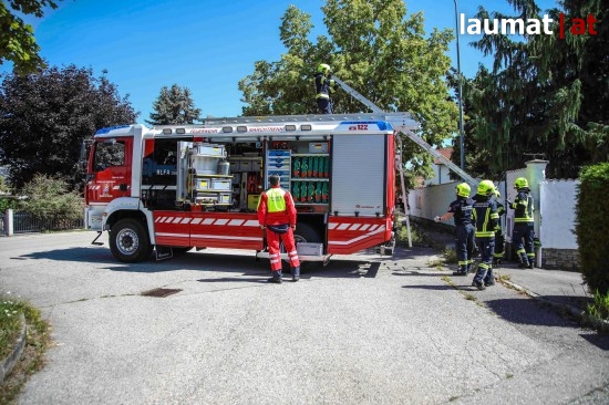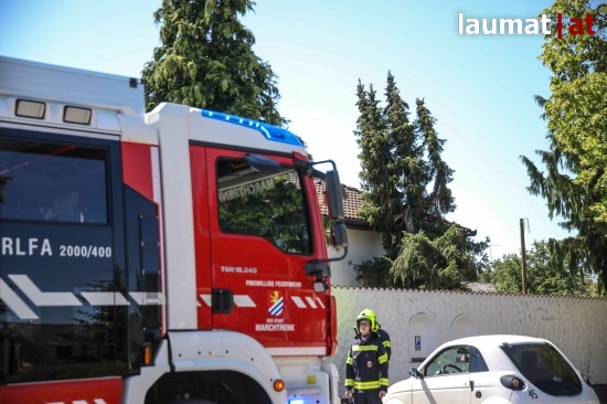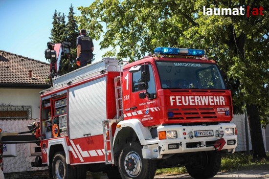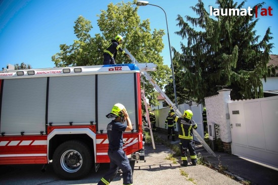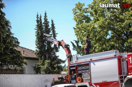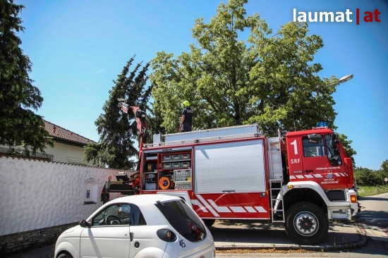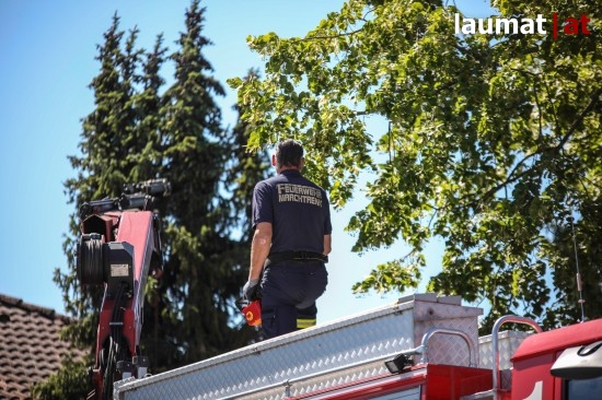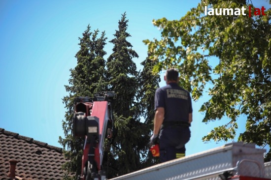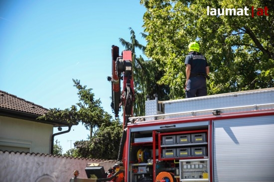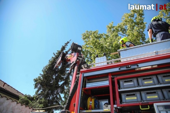 Die Feuerwehr stand Montagvormittag in Marchtrenk (Bezirk Wels-Land) im Einsatz um einen Baum zu entfernen, der sich an ein Haus angelehnt hatte.
