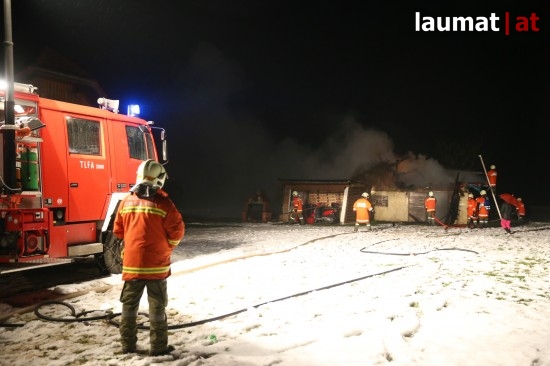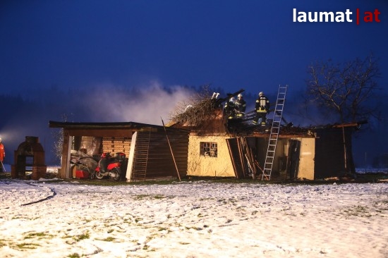 Vier Feuerwehren standen Montagfrüh in Schlüßlberg (Bezirk Grieskirchen) beim Brand eines Geräteschuppens im Einsatz.