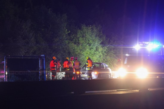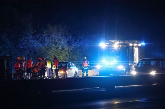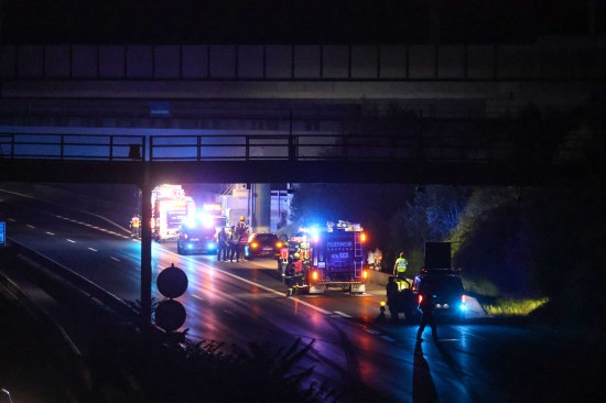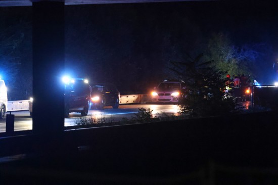Feuerwehren bei Ölaustritt nach Verkehrsunfall auf Welser Autobahn in Marchtrenk im Einsatz