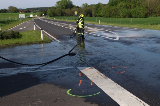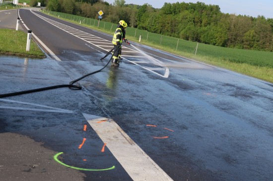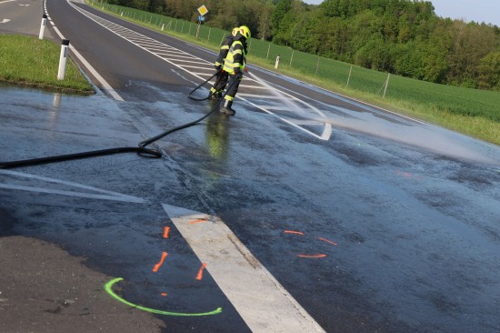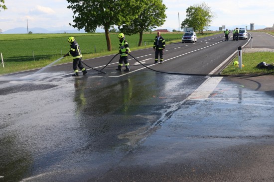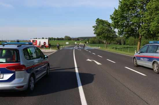 Die B138 Pyhrnpass Straße war zwischen Thalheim bei Wels und Sattledt für etwa zwei Stunden gesperrt. Der Verkehr wurde großräumig umgeleitet.