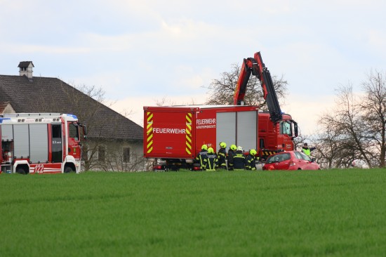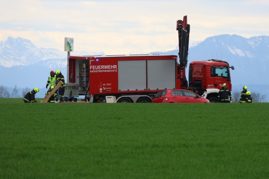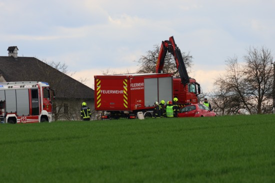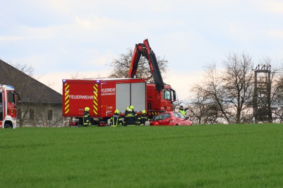 Frontalcrash verhindert: PKW landet bei Ausweichmanöver in Sattledt im Feld