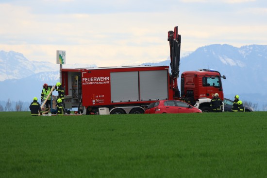 Ein Überholmanöver im Bereich einer Fahrbahnkuppe auf der L537 Sattledter Straße, Oberhart, bei Sattledt endete am Dienstagnachmittag beinahe in einem Frontalcrash. Eine Autolenkerin hatte offenbar versucht, trotz Gegenverkehr zu überholen, ein entgegenkommender PKW-Lenker konnte noch rechtzeitig ausweichen. Der PKW landete dabei aber im angrenzenden Feld. Die Feuerwehr wurde mit dem Einsatzbegriff "Freimachen von Verkehrswegen" zur PKW-Bergung alarmiert. Das Auto wurde von der Feuerwehr aus dem Feld geborgen und in einer Seitenstraße abgestellt.
