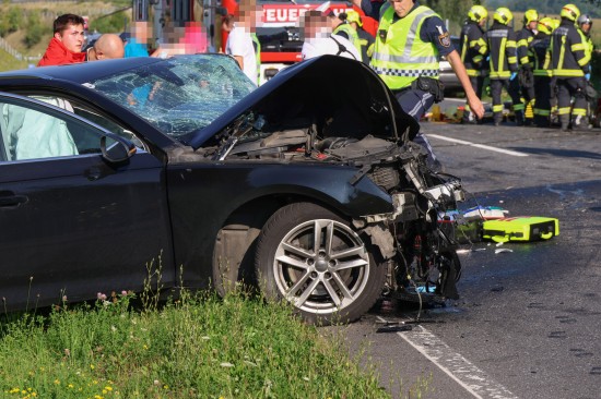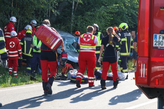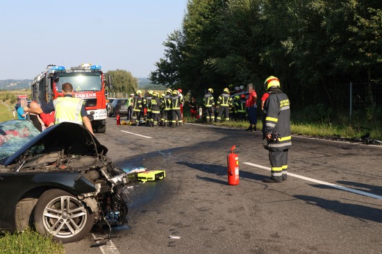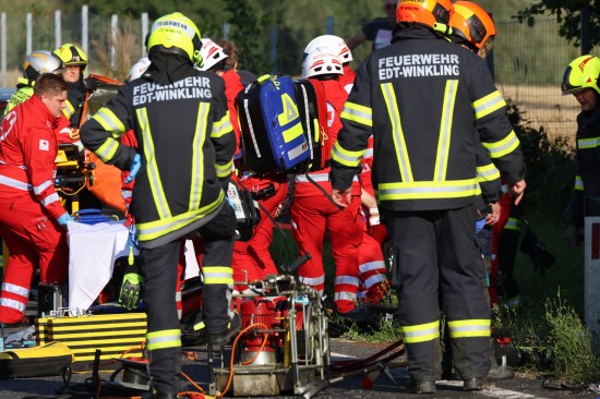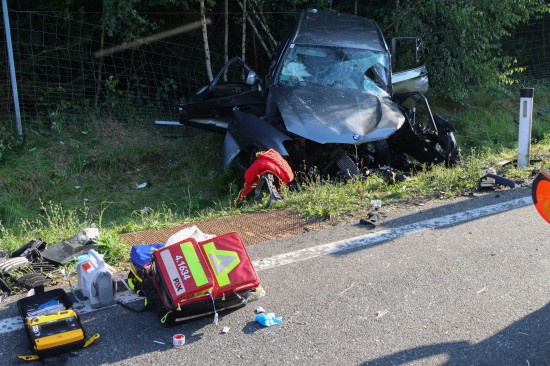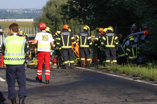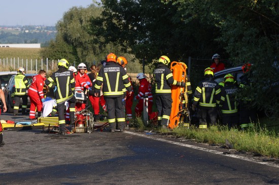 Der folgenschwere Crash passierte im dichten Abendverkehr auf der B1 Wiener Straße im Gemeindegebiet von Edt bei Lambach. Aus noch unbekannten Gründen kollidierten im Bereich der Umfahrung Lambach zwei PKW frontal. Die beiden Unfallwracks kamen jeweils im Böschungsbereich zum Stillstand. Zwei Feuerwehren, ein Großaufgebot an Rettungskräften mit drei Notarzthubschraubern und die Polizei wurden alarmiert. In einem Fahrzeug waren zwei Personen schwer eingeklemmt, die von den Einsatzkräften der Feuerwehr befreit werden mussten. Für eine Person gab es keine Rettung mehr. Die Notärztin des Notarzthubschraubers Christophorus 10 konnte nur mehr den Tod feststellen. Gegenüber beim anderen Unfallfahrzeug leider ein ebenso dramatischer Ausgang. Der Lenker konnte trotz Reanimationsbemühungen durch den Notarzt des Notarzthubschraubers Martin 3 nicht mehr ins Leben zurückgeholt werden. Ein dritter Notarzthubschrauber - Christophorus Europa 3 - wurde daraufhin storniert. Eine schwerverletzte Beifahrerin wurde dann mit dem Notarzthubschrauber Christophorus 10 in ein Linzer Krankenhaus geflogen. In weiterer Folge sicherte die Polizei die Spuren am Unfallort, eine Drohne wurde angefordert. Nach Abschluss der polizeilichen Erhebungen wurde mit den Aufräumarbeiten seitens der Feuerwehren begonnen. Die Unfallfahrzeuge wurden vom Abschleppdienst abtransportiert.