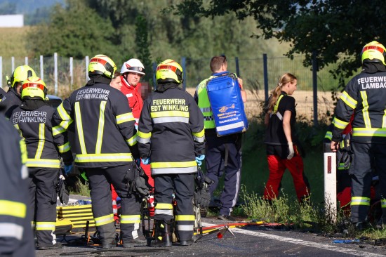 "Ein 45-Jähriger aus dem Bezirk Wels-Land lenkte seinen PKW am 11. August 2025 gegen 17:10 Uhr auf der Umfahrung Lambach von Gunskirchen kommend Richtung Schwanenstadt. Zur selben Zeit fuhr ein 71-jähriger deutscher Staatsbürger aus dem Bezirk Vöcklabruck mit seinem PKW in Begleitung seiner 71-jährigen Ehefrau auf der B1 Wiener Straße in die entgegengesetzte Richtung. Aus bislang unbekannter Ursache kam es bei Straßenkilometer 223,6, Bereich Edt bei Lambach, auf einem geraden Straßenabschnitt zu einem Frontalzusammenstoß der beiden Fahrzeuge. Alle Insassen wurden in ihren Fahrzeugen eingeklemmt. Die ersteintreffende Streife begann unmittelbar nach der Bergung mit Reanimationsmaßnahmen am schwer verletzten 45-Jährigen, diese musste allerdings wenig später vom Notarzt erfolglos abgebrochen werden. Die schwerverletzte 71-jährige Beifahrerin wurde von der Feuerwehr aus dem Wrack befreit und nach der Erstversorgung mit dem Notarzthubschrauber Christophorus 10 in das Unfallkrankenhaus Linz geflogen. Ihr 71-jähriger Ehemann wurde bei dem Unfall so schwer verletzt, dass er noch an der Unfallstelle verstorben ist. Die B1 Wiener Straße war im Bereich der Unfallstelle für etwa sechs Stunden gesperrt."