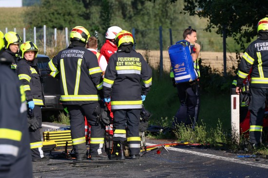 Edt bei Lambach. Ein folgenschwerer Frontalcrash auf der B1 Wiener Straße in Edt bei Lambach (Bezirk Wels-Land) am späten Montagnachmittag endete tragisch. Zwei Personen erlagen noch am Unfallort den Verletzungen.