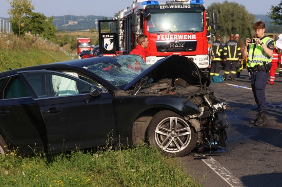 Ein folgenschwerer Frontalcrash auf der B1 Wiener Straße in Edt bei Lambach (Bezirk Wels-Land) am späten Montagnachmittag endete tragisch. Zwei Personen erlagen noch am Unfallort den Verletzungen.