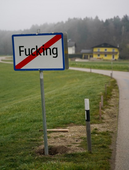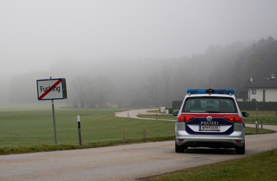 "Ein 23-Jähriger aus Wien, ein 38-Jähriger und ein 30-jähriger deutscher Staatsbürger, beide aus Tirol, werden beschuldigt, in den Abendstunden des 27. November 2020 im Ortsbereich Fucking, Gemeinde Tarsdorf, mehrere Wegweiser gestohlen zu haben. Ein Anwohner wurde durch die Lärmentwicklung des Trennschleifers auf die Täter aufmerksam und verständigte die Polizei. Gegen 21:00 Uhr konnte der Wagen angehalten und kontrolliert werden. Dabei konnten die Polizisten im Kofferraum einen Rohrsteher mit mehreren Wegweisern feststellen, welcher offensichtlich kurz vorher abgetrennt und gestohlen wurde. Die Täter hatten es auf den Wegweiser mit der Aufschrift Fucking abgesehen. In der Nacht kam es noch zu weiteren ähnlichen Vorfällen. Im Nahbereich der Ortschaft Fucking konnten die Polizeistreifen feststellen, dass mehrere Hinweisschilder beziehungsweise Vorwegweiser mit der Aufschrift Fucking von bislang unbekannten Tätern abmontiert und gestohlen wurden", berichtet die Polizei.
