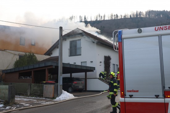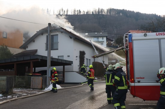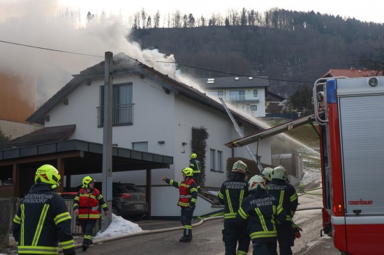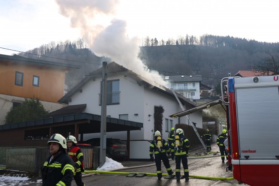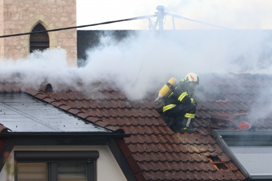 Die Einsatzkräfte wurden am Nachmittag zu einem "Brand im Dachbereich" eines Einfamilienhauses im Ortszentrum von Pinsdorf alarmiert. Die Einsatzkräfte dreier Freiwilliger Feuerwehren und zweier Betriebsfeuerwehren standen mit einem größeren Aufgebot im Einsatz. Durch das rasche Einschreiten der Feuerwehr konnte ein Vollbrand des Dachstuhls sozusagen in letzter Minute noch verhindert werden. Betroffen war in erster Linie der Dachstuhl des Hauses. Das Dach musste für die Brandbekämpfung teilweise geöffnet werden. Verletzt wurde niemand.