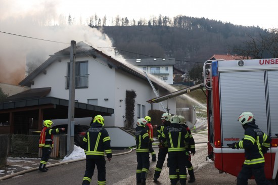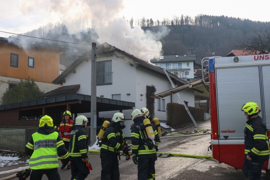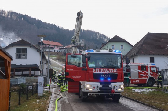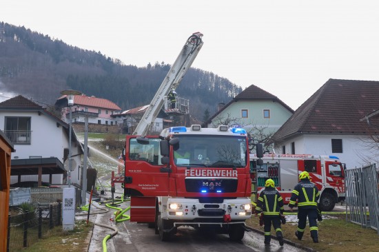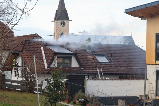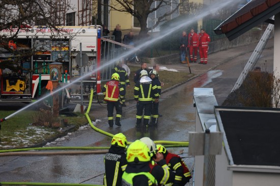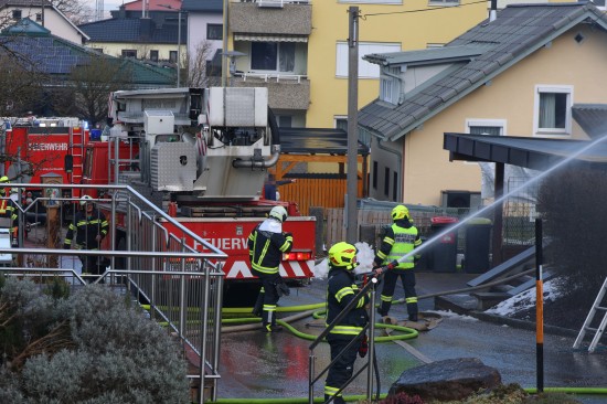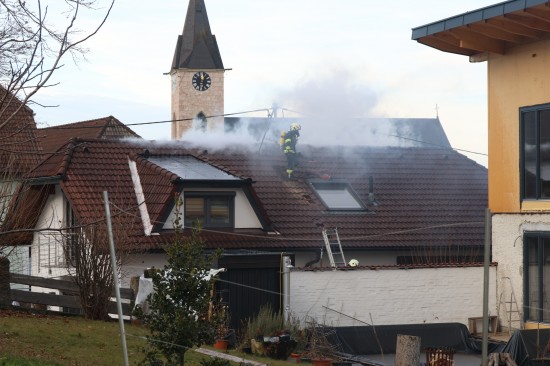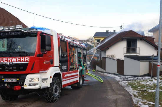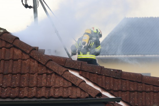 Fünf Feuerwehren bei Dachstuhlbrand an einem Wohnhaus in Pinsdorf im Einsatz