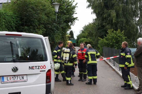 Gasaustritt: Gasleitung bei Baggerarbeiten auf einem Grundstück in Grieskirchen beschädigt