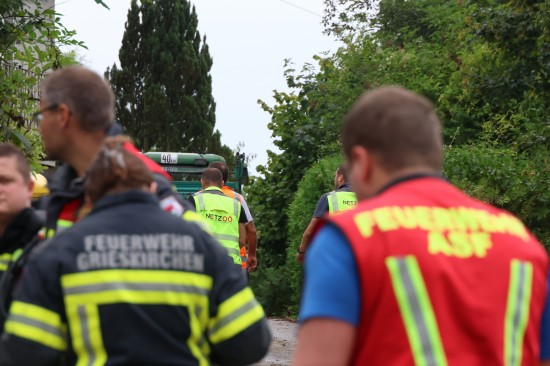 Bei Baggerarbeiten an einem Grundstück wurde eine Hauptleitung beschädigt, sodass es zu einem größeren Gasaustritt kam. Die Feuerwehr wurde alarmiert, ebenso Techniker des Energieversorgungsunternehmens und die Polizei. Die Einsatzkräfte sperrten den Bereich ab und führten Messungen durch. Seitens des Energieversorgungsunternehmens wurde die Gasleitung abgesperrt sowie sicherheitshalber der Strom in einem Teil von Grieskirchen abgeschaltet. Infolge der Stromabschaltung musste die Feuerwehr dann noch mehrere Kleineinsätze abarbeiten, wie eine Personenrettung aus einem steckengebliebenen Lift, eine ausgelöste Warnanlage bei einer Tiefgarage und eine Rauchabzugsklappe, die sich geöffnet hatte. Die Einsatzstelle konnte dann nach rund zwei Stunden freigegeben werden, weitere Maßnahmen werden seitens des Energieversorgungsunternehmens gesetzt.