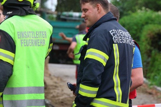 Bei Grabungsarbeiten mit einem Bagger wurde am Donnerstagvormittag in Grieskirchen eine Gasleitung beschädigt. Die Feuerwehr und Techniker des Energieversorgungsunternehmens standen im Einsatz.