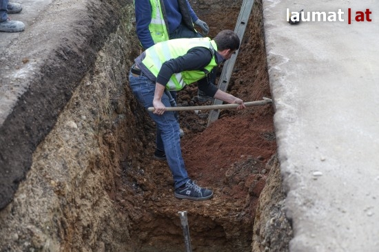 Gasleitung bei Bauarbeiten in einer Siedlungsstraße in Neuhofen an der Krems beschädigt