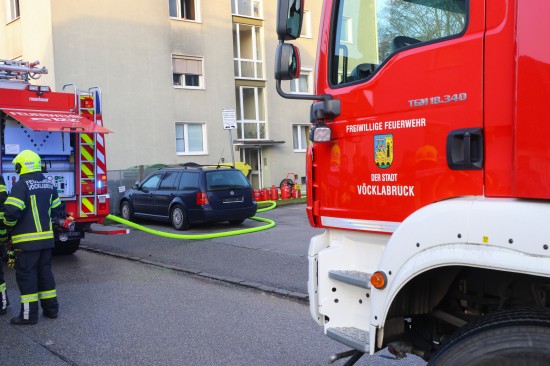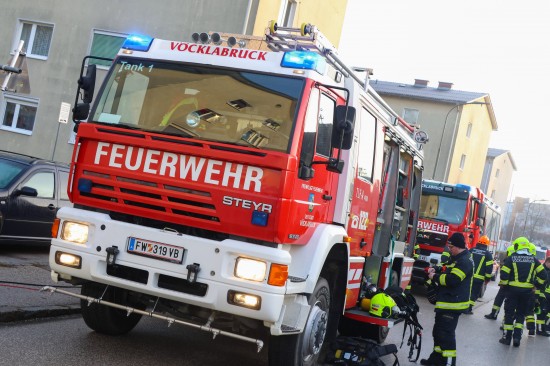 Ein Zimmerbrand in einer Wohnung eines Mehrparteienwohnhauses in Vöcklabruck sorgte am Dienstag für einen längeren Einsatz der Feuerwehr.