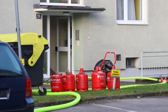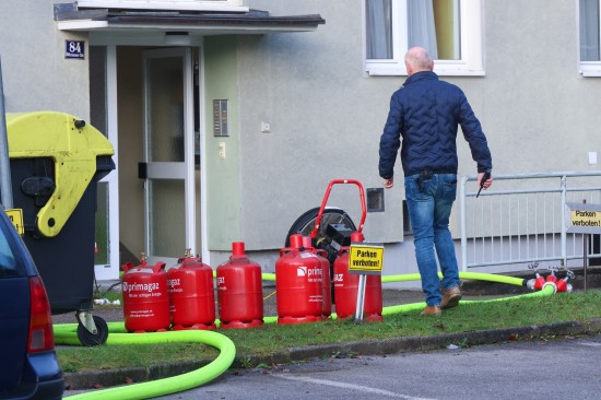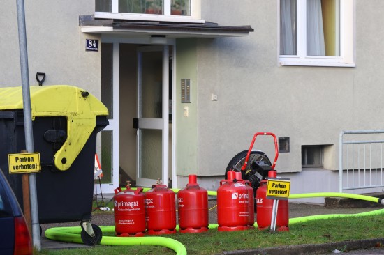 Mehrere große Propangasflaschen aus Wohnung ins Freie gebracht