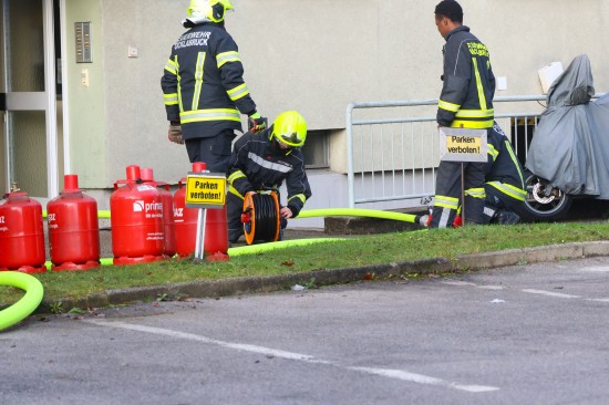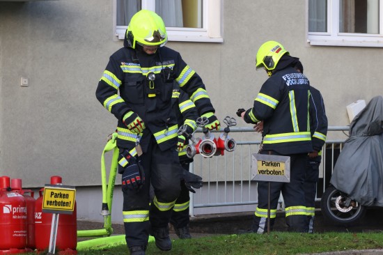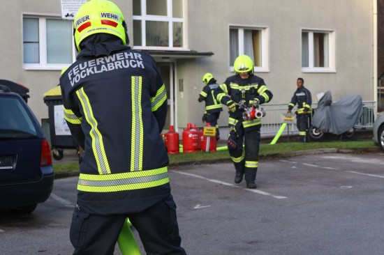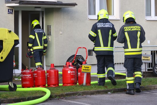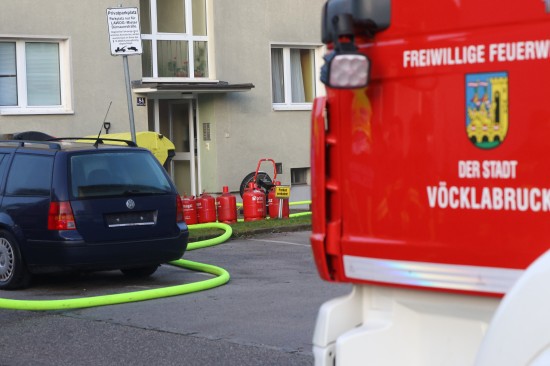 Die Feuerwehr wurde Dienstagfrüh zu einem Brand in einem Mehrparteienwohnhaus in Vöcklabruck alarmiert. Betroffen war ersten Angaben nach ein Zimmer einer Wohnung. Die Bewohnerinnen und Bewohner des betroffenene Hauses konnten sich ersten Angaben nach unverletzt ins Freie in Sicherheit bringen. Die Einsatzkräfte der Feuerwehr standen dann aber doch vor einer nicht ganz ungefährlichen Situation, denn in der Wohnung wurden gleich mehrere große Propangasflaschen entdeckt, die rasch ins Freie gebracht werden mussten um eine weitere Gefährdung auszuschließen. Der Brand, welcher sich auf einen Bereich in einem Zimmer beschränkte, konnte rasch gelöscht werden. In weiterer Folge warteten die Einsatzkräfte das Eintreffen des Brandermittlers ab, um der Brandursache in der Wohnung auf den Grund zu gehen.