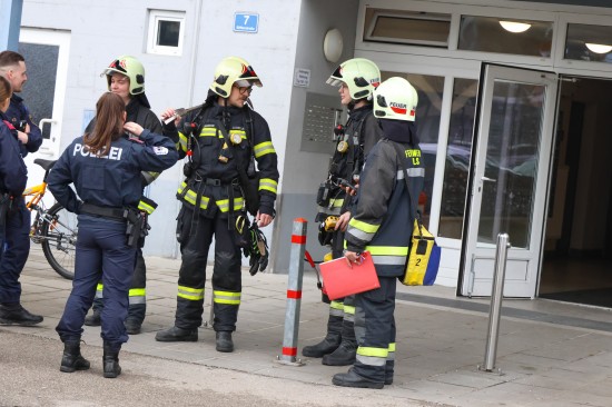 Zu einem gemeldeten Gasgeruch wurden die Einsatzkräfte von Feuerwehr und Polizei Freitagmittag zu einem Hochhaus in Wels-Neustadt gerufen.