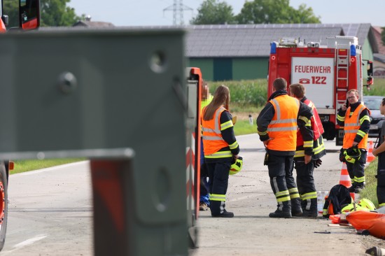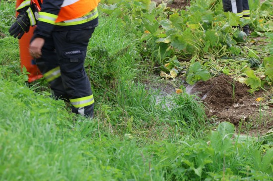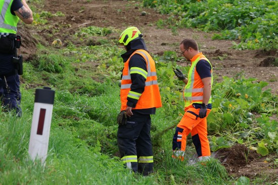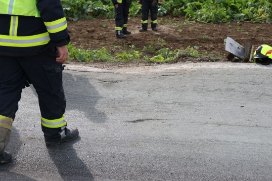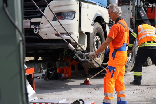 Der Unfall passierte am Montag in den frühen Morgenstunden an der Gemeindegrenze zwischen Neukirchen bei Lambach und Schlatt, wo der LKW offenbar zuerst rechts ins Bankett geraten und dann links von der B1 Wiener Straße abgekommen ist. Der LKW kam dann im Kürbisfeld zum Stillstand. Die Feuerwehr wurde zu Aufräumarbeiten alarmiert. Neben einem LKW-Bergeunternehmen wurden auch zwei weitere Feuerwehren zur Unterstützung angefordert. Zuerst wurden die Fertigteile geborgen, anschließend konnte mit der Bergung des verunfallten Aufliegers und dann der Zugmaschine begonnen werden. Weil auch die Fahrbahn beschädigt wurde, musste zudem seitens der Straßenmeisterei mit der Reparatur der Fahrbahn begonnen werden.