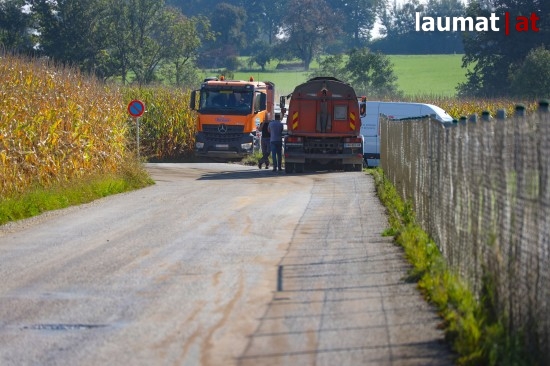 In Sattledt (Bezirk Wels-Land) standen die Einsatzkräfte Montagvormittag bei einem größeren Dieselaustritt aus einem beschädigten LKW-Tank im Einsatz.