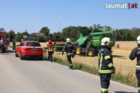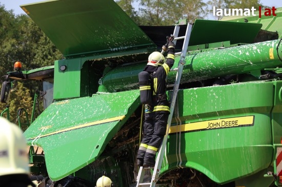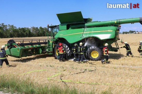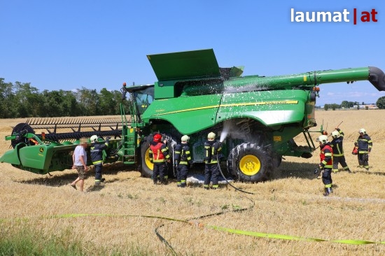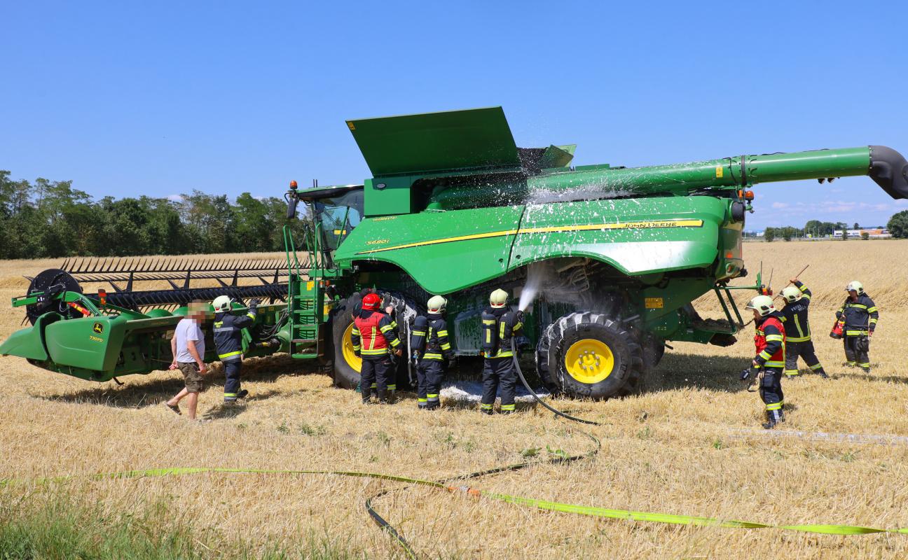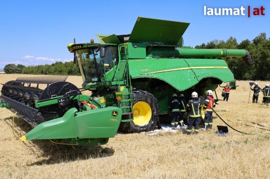 Die Einsatzkräfte der Feuerwehr wurden zu einer Nachschau nach einem Brand bei einem großen Mähdrescher alarmiert. Ein kleiner Fleck des Stoppelfeldes brannte ebenso. Zwischenzeitlich hat die Erntemaschine aber erneut zu brennen begonnen, das Feuer konnte durch die zwischenzeitlich eingetroffene Feuerwehr rasch abgelöscht werden. Ein größerer Brand des Mähdreschers konnte so offenbar in letzter Minute verhindert werden.